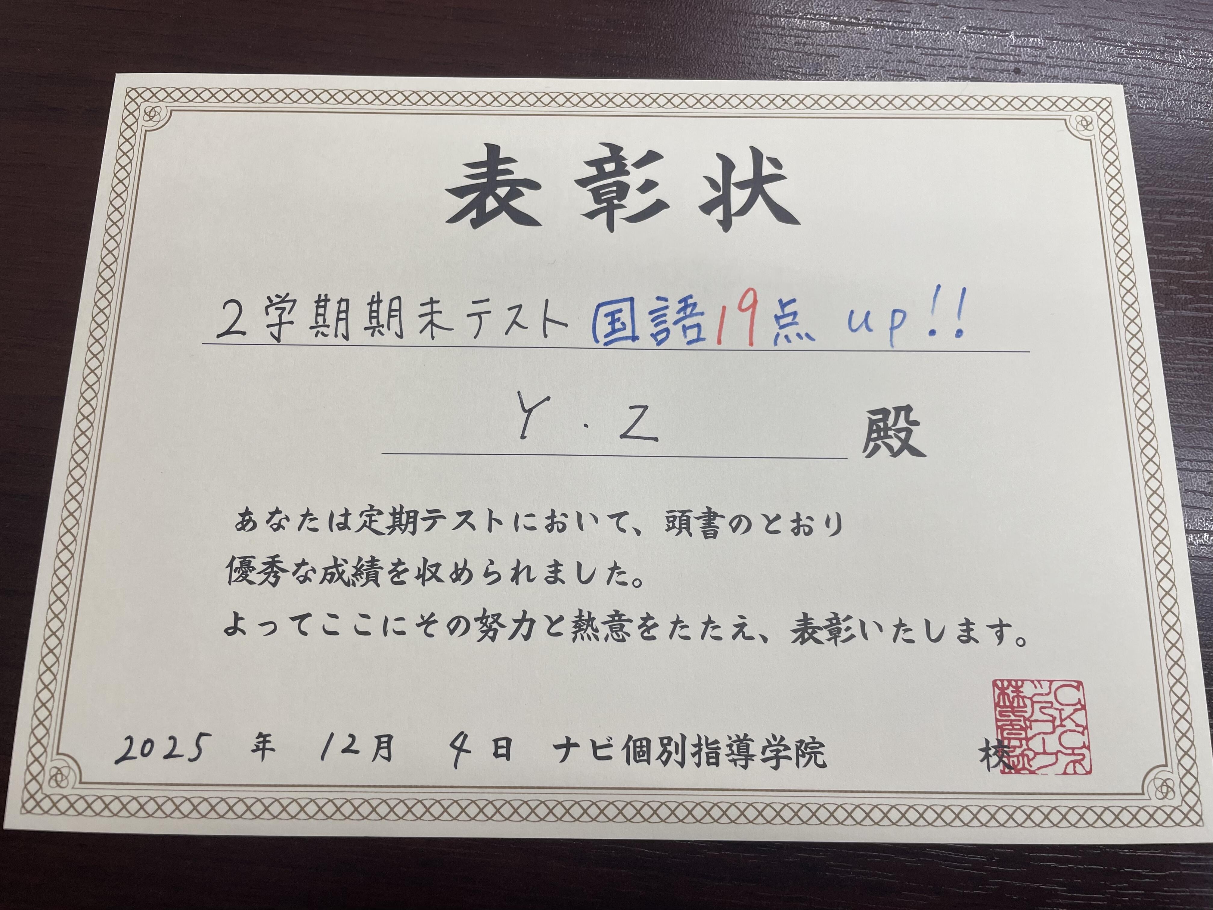 今回は中学3年生で国語19点アップしたY・Z君です!