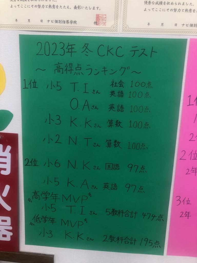 今回は塾内テストの高得点ランキング!!