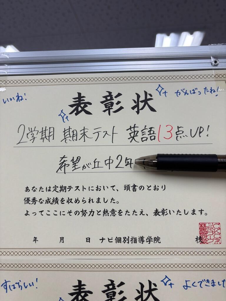 11月に行われた2学期期末テストの成績アップのご紹介です。