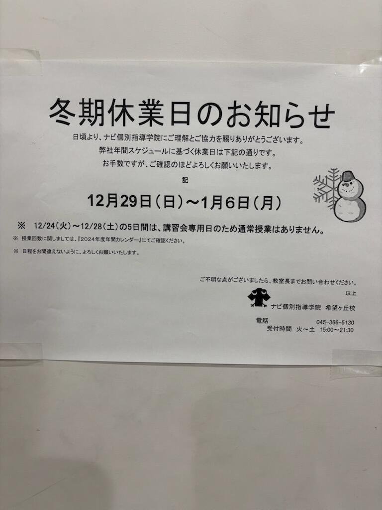 12月29日(日)~1月6日(月)は冬期休業となります。