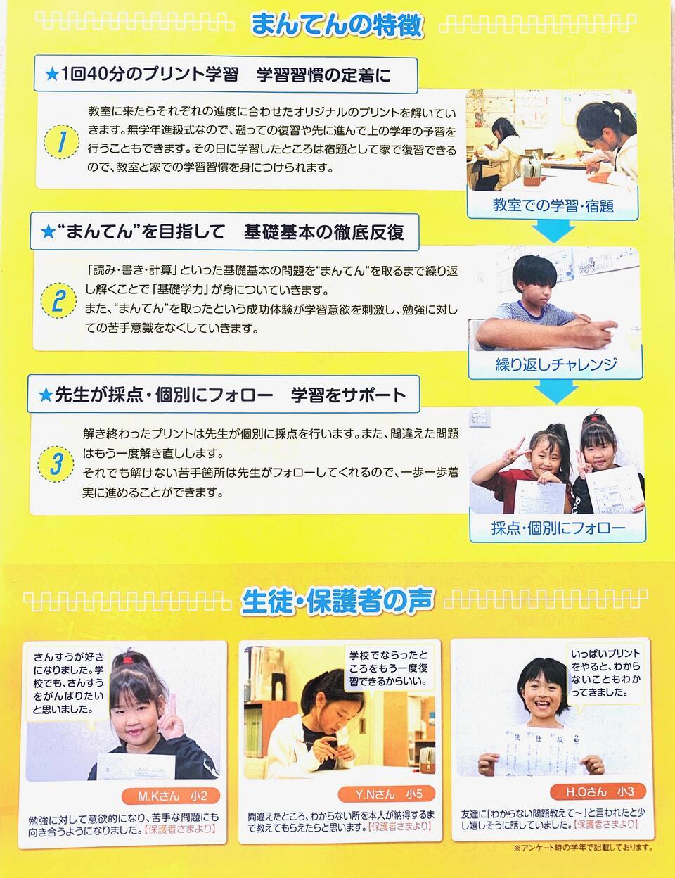 まんてんスクールとは、小学生対象のプリント学習教室、