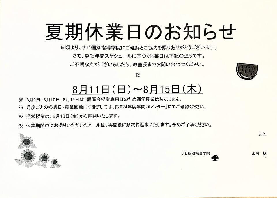 《夏期休業のお知らせ》