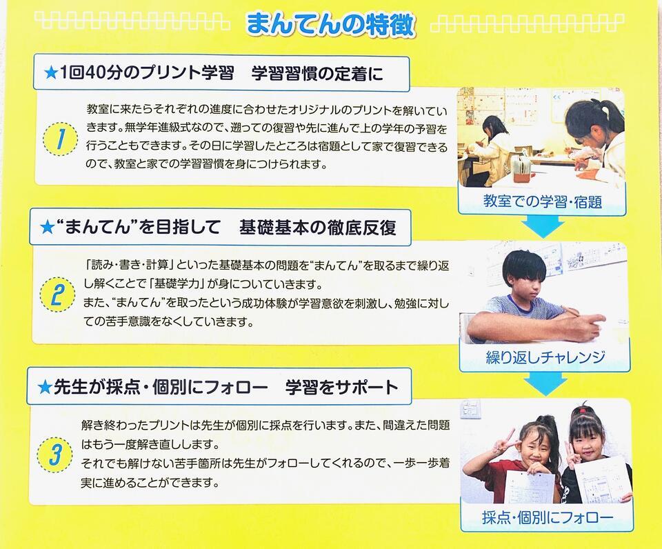 「読み」「書き」「計算」の基礎学力を身につけるためのプリント学習教室です。