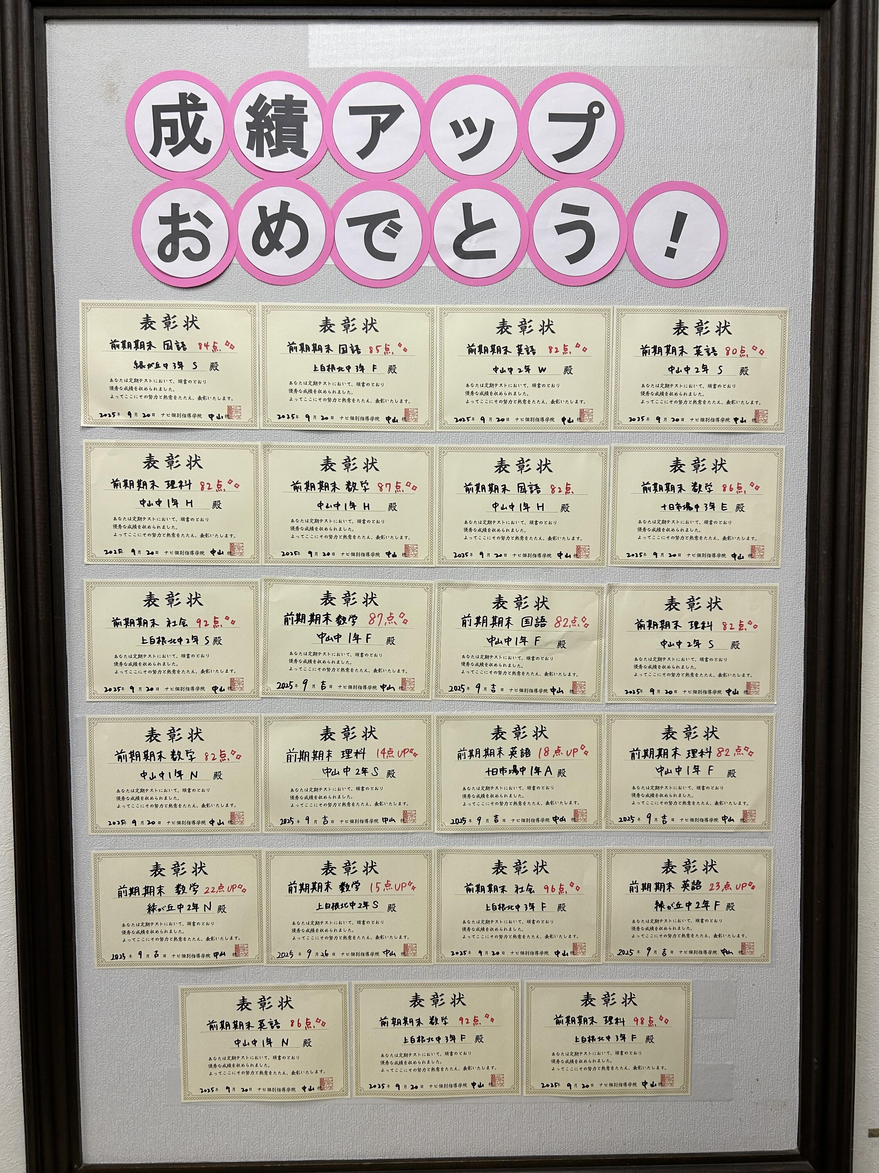 中山校では中学生の生徒さんたちのテストの結果が出ました!