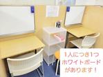 ナビ個別指導学院の授業は、個別の席ごとに設置された自分専用のホワイトボードで解き方や考え方を一緒に確認、それから生徒が問題を解くという「個別授業」スタイルです。