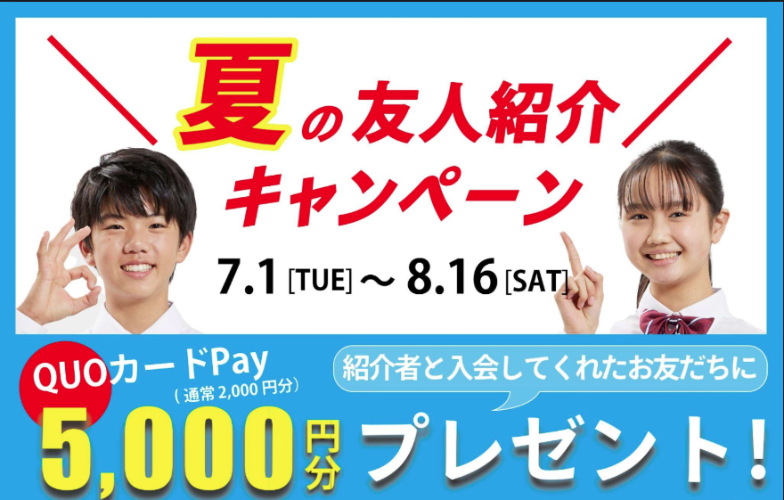 紹介者と入会してくれたお友達にQUOカードPayをプレゼントします。