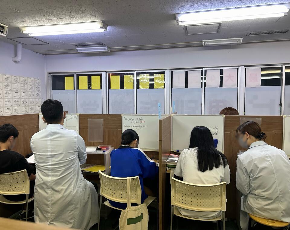 写真は通常授業で内申対策、入試対策講座で当日点対策を行っている生徒たちの様子です。