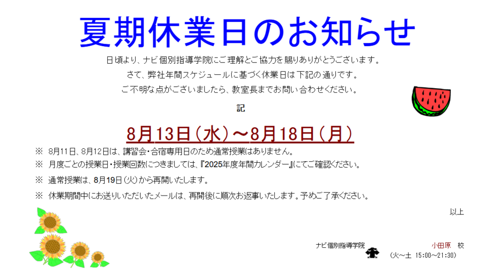 ナビ個別指導学院ではお子様の学年や学習状況に合わせた指導を行っております。