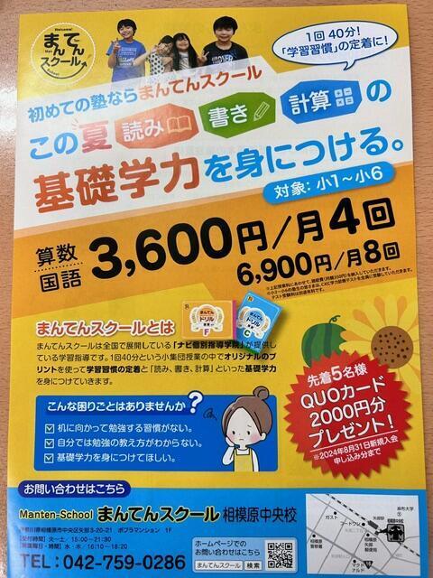「まんてんスクール」というプリント学習コースがございます。※小学生対象