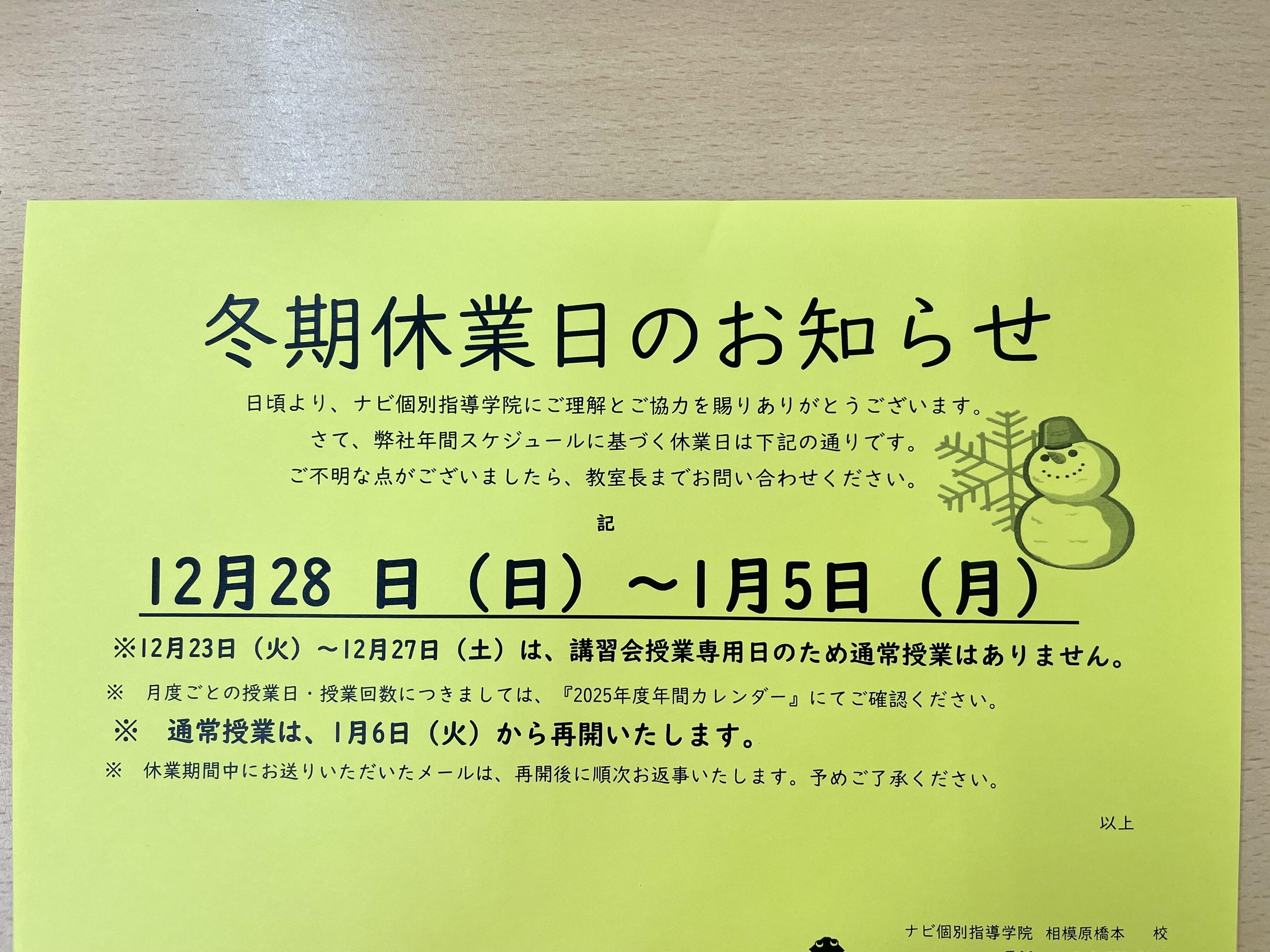 今日から冬休みに入った学校も多いでしょうか?