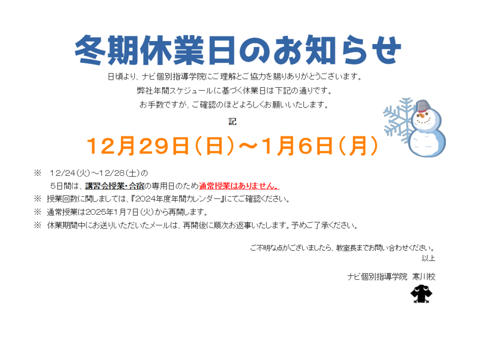 授業はもちろん自習室もご利用ができませんのでご注意ください。