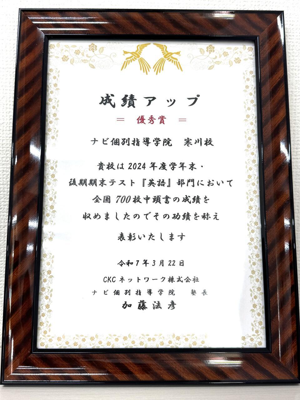 前回は「数学部門」での受賞でしたが、今回は「英語部門」での受賞となります。