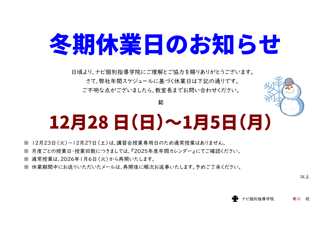 授業はもちろん自習室もご利用ができませんのでご注意ください。