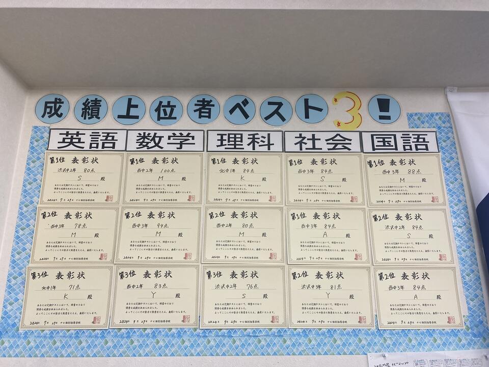 さて、本日は1学期期末テストの上位3名の発表です!!