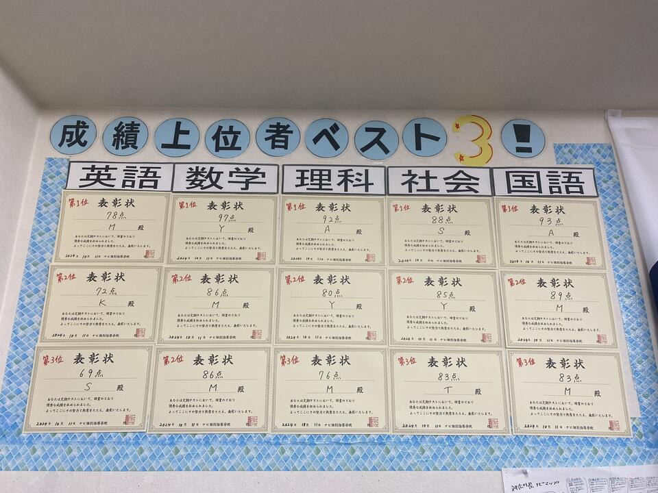さて、本日は2学期中間テスト上位3名の発表です!!