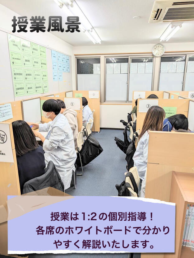 生徒さんそれぞれの学校での授業内容、授業進度、理解度を確認しながら指導をさせて頂きます。