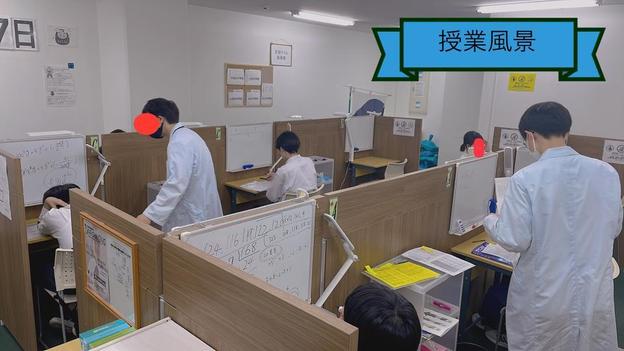 ナビ個別指導学院の授業は、個別の席ごとに設置された自分専用のホワイトボードで解き方や考え方を一緒に確認、それから生徒が問題を解くという「個別授業」スタイルです。