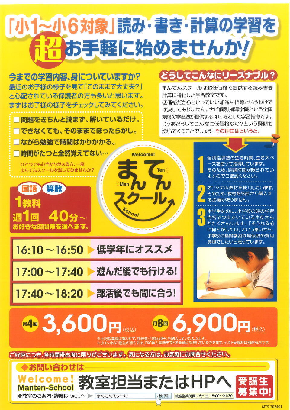 「読み・書き・計算」に特化したまんてんスクールも開講しております。