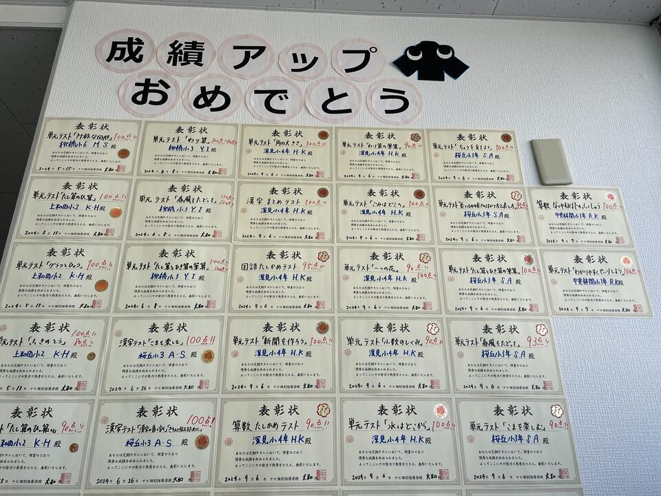 今回好成績事例を夏休み明けテストで小学生が たくさん持て来てくれました!
