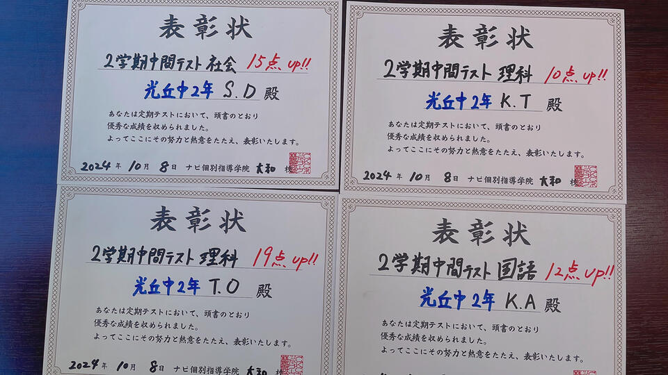 今回も、先週に続き「2学期中間テストでの成績アップ事例」を発表します!