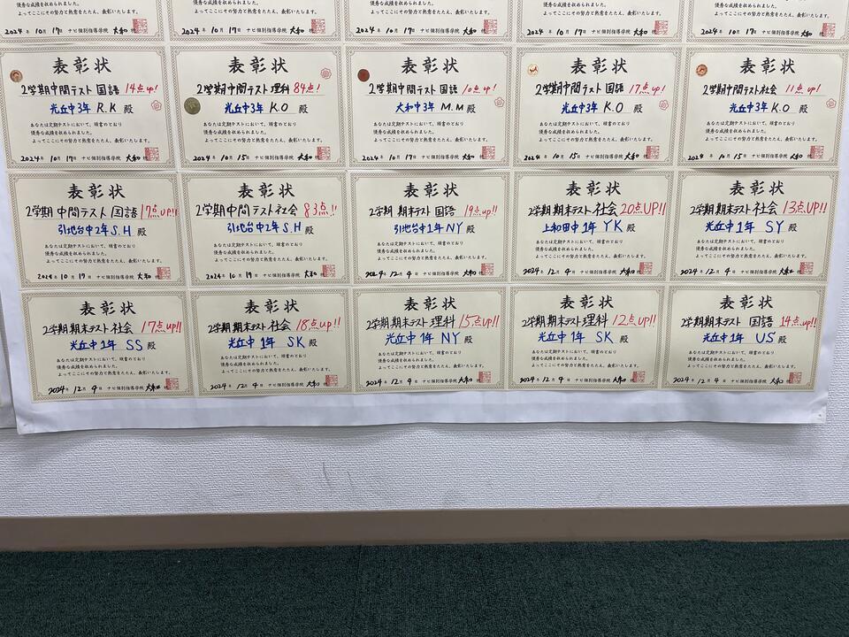 上和田中1年 Y・Kさん 社会20点UP!