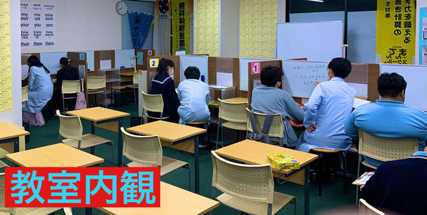 ナビ個別指導学院の授業は、個別の席ごとに設置された自分専用のホワイトボードで解き方や考え方を一緒に確認、それから生徒が問題を解くという「個別授業」スタイルです。
