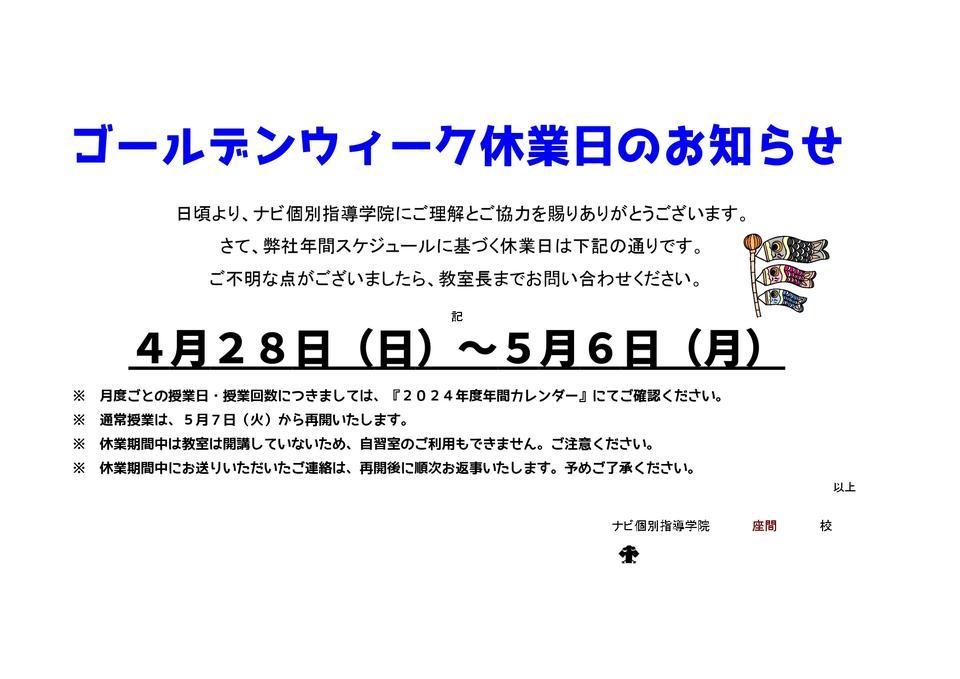 ナビ個別指導学院座間校は、ゴールデンウィークの