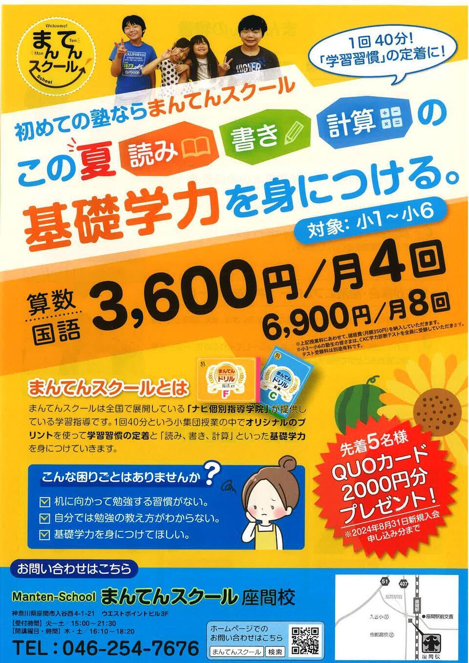 週1回40分のまんてんスクールで一緒に頑張って見ませんか?