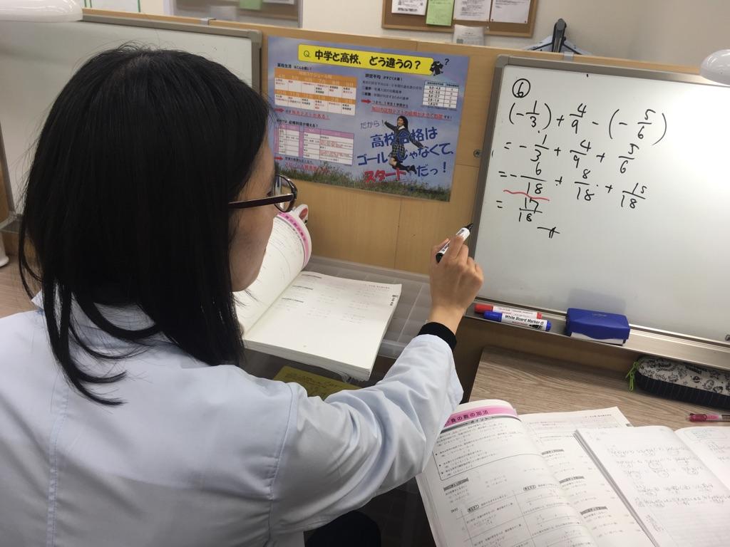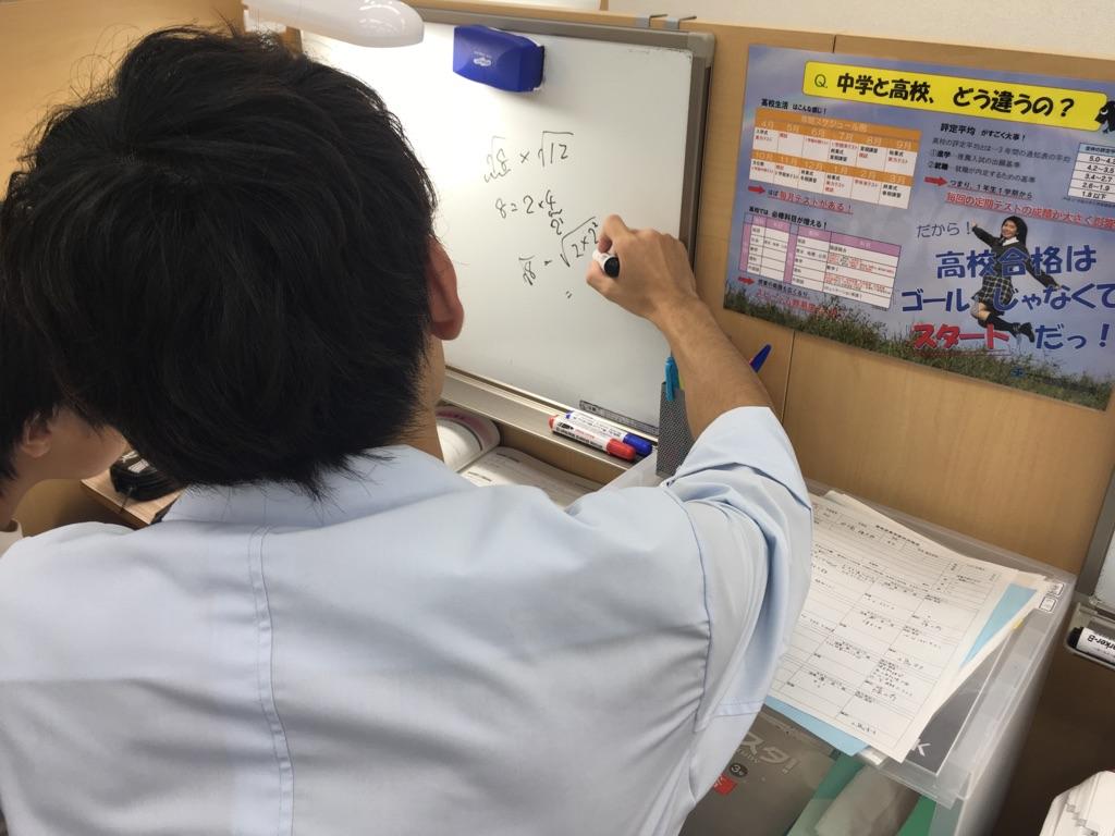 ナビ個別指導学院の授業は、個別の席ごとに設置された自分専用のホワイトボードで解き方や考え方を一緒に確認、それから生徒が問題を解くという「個別授業」スタイルです。