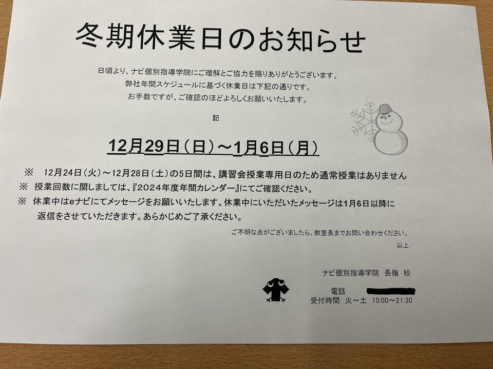 冬期休業のお知らせも載せてますのでご確認お願い致します!