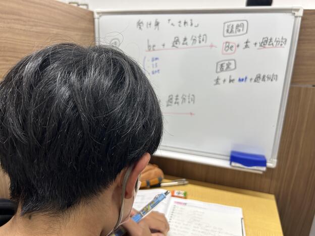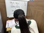ナビ個別指導学院の授業は、個別の席ごとに設置された自分専用のホワイトボードで解き方や考え方を一緒に確認、それから生徒が問題を解くという「個別授業」スタイルです。