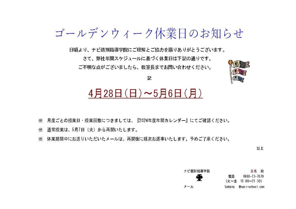 4/28(日)~5/6(月)はゴールデンウィーク休業となっております。