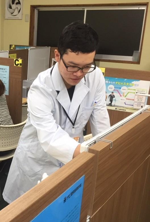 ナビ個別指導学院の授業は、個別の席ごとに設置された自分専用のホワイトボードで解き方や考え方を一緒に確認、それから生徒が問題を解くという「個別授業」スタイルです。