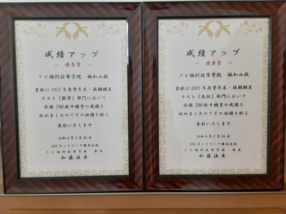 学年末テスト【数学部門】【英語部門】の両方で成績アップ優秀賞を受賞しました!パチパチパチ
