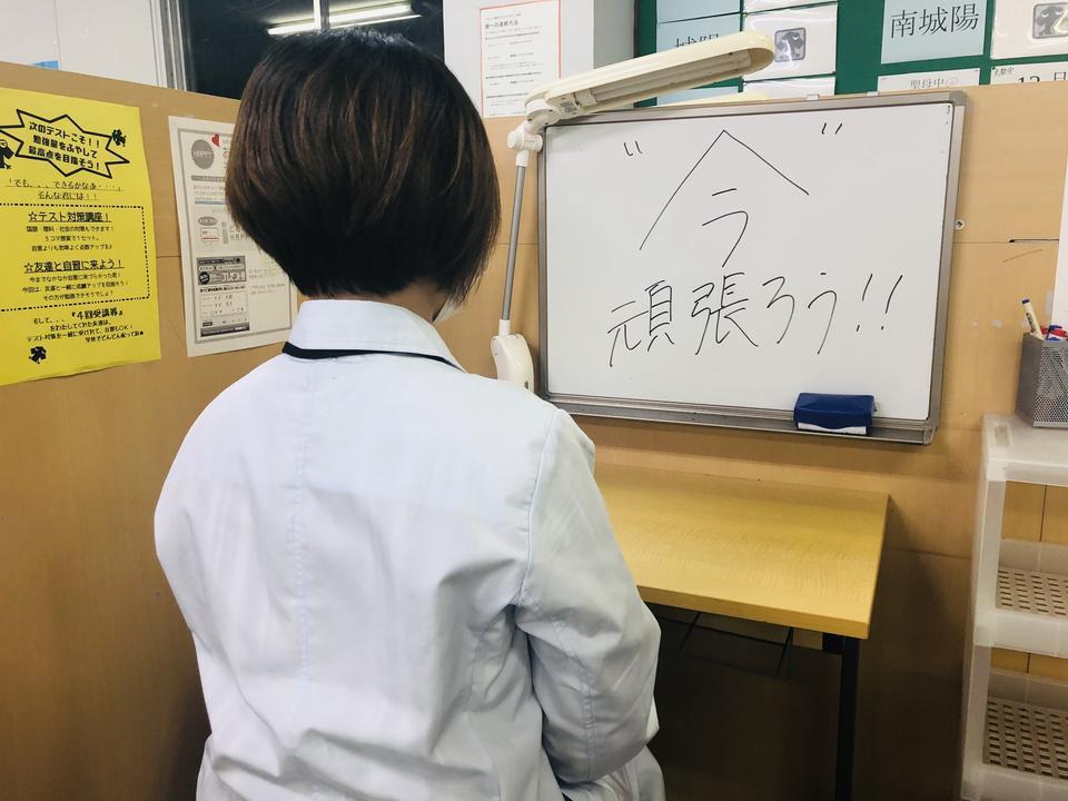 ナビ個別指導学院の授業は、個別の席ごとに設置された自分専用のホワイトボードで解き方や考え方を一緒に確認、それから生徒が問題を解くという「個別授業」スタイルです。