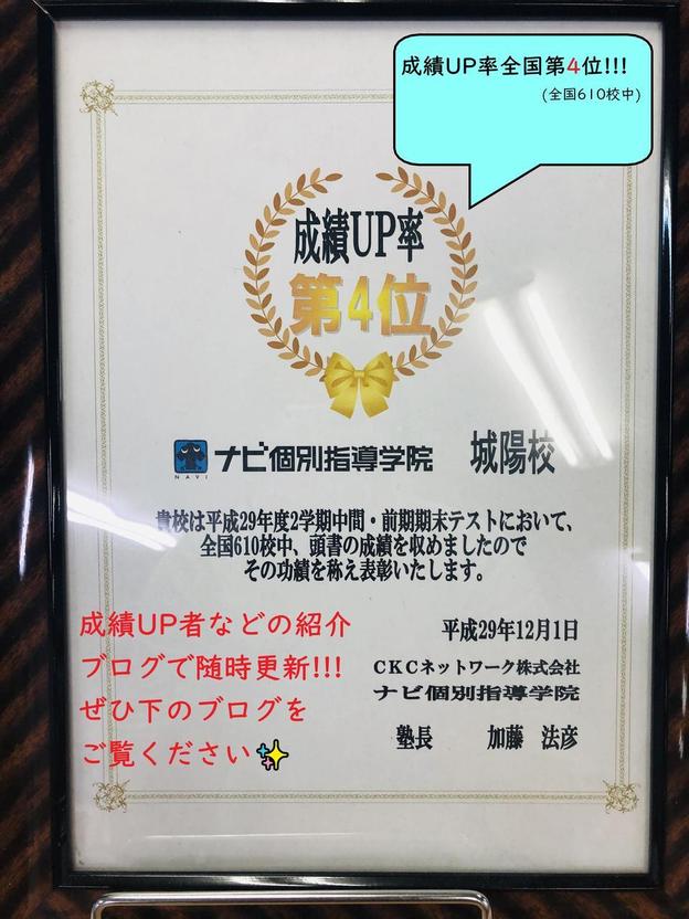 平均点が下がっている中城陽校では約70%の生徒が成績をあげてくれました。