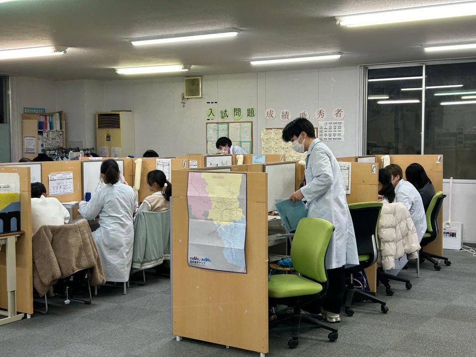 残念ながら不合格だった生徒は、その日にすぐ自習室に来て中期入試の過去問を熱心に解いていました。