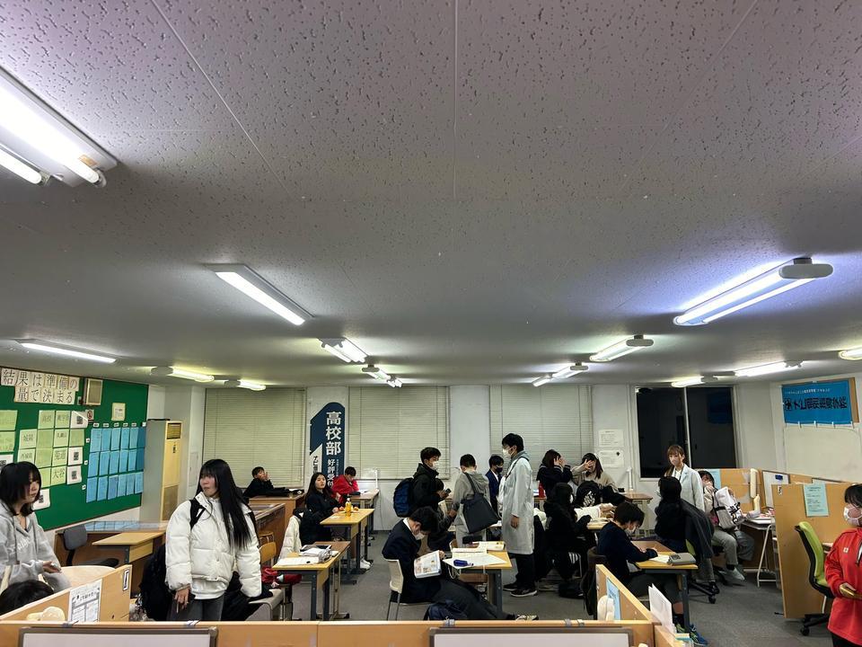 写真は今週の休憩時間の自習室に様子ですがテスト直前で生徒も講師も盛り上がっています!