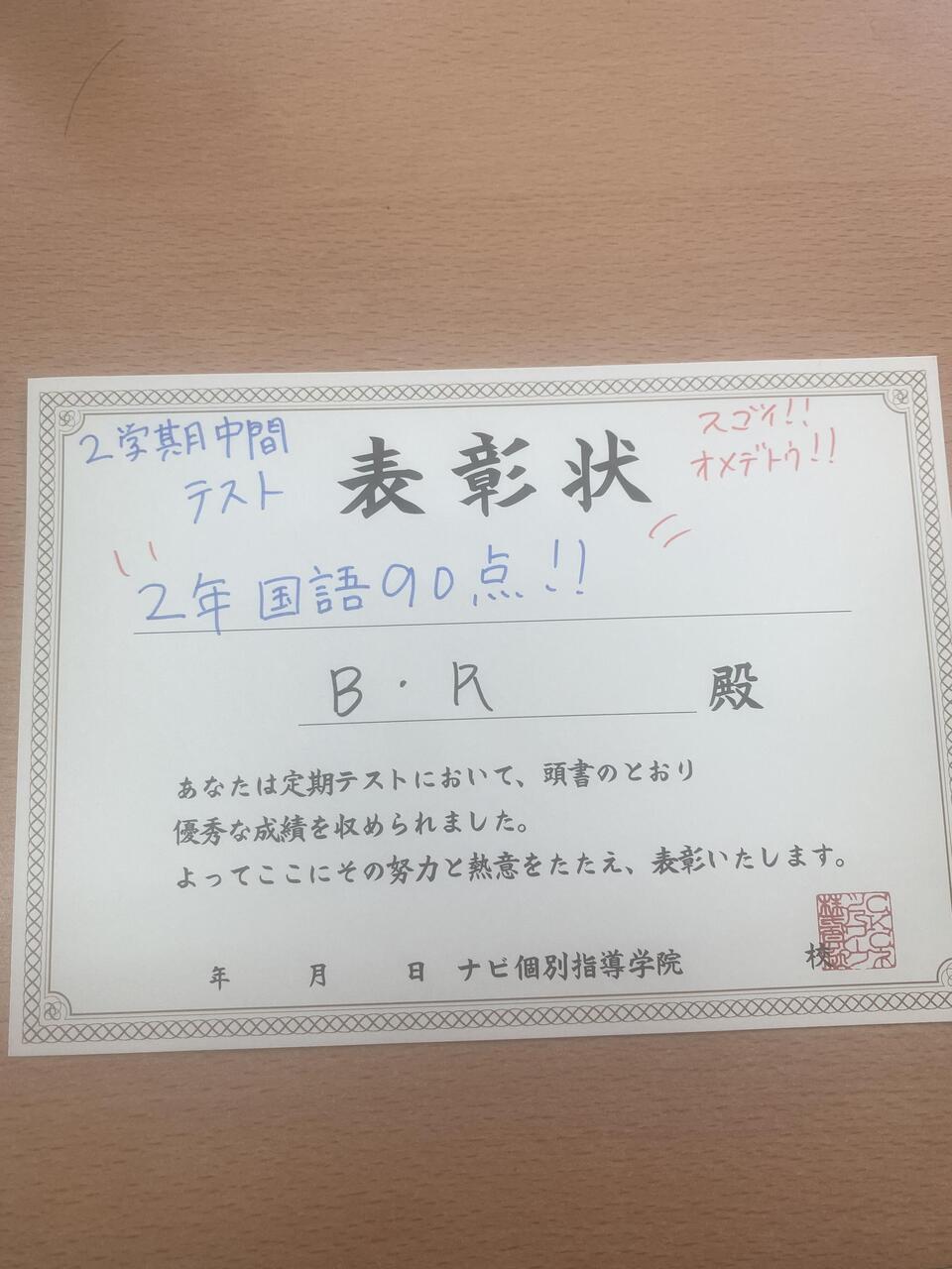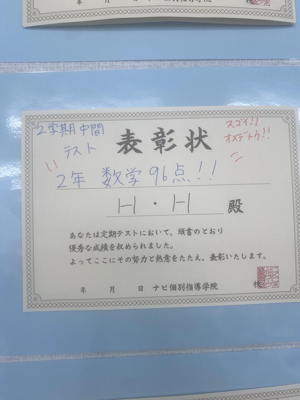 普段から頑張ってくれている生徒ですが、1学期が少し下がってしまっていたため今回は奮起してくれました!