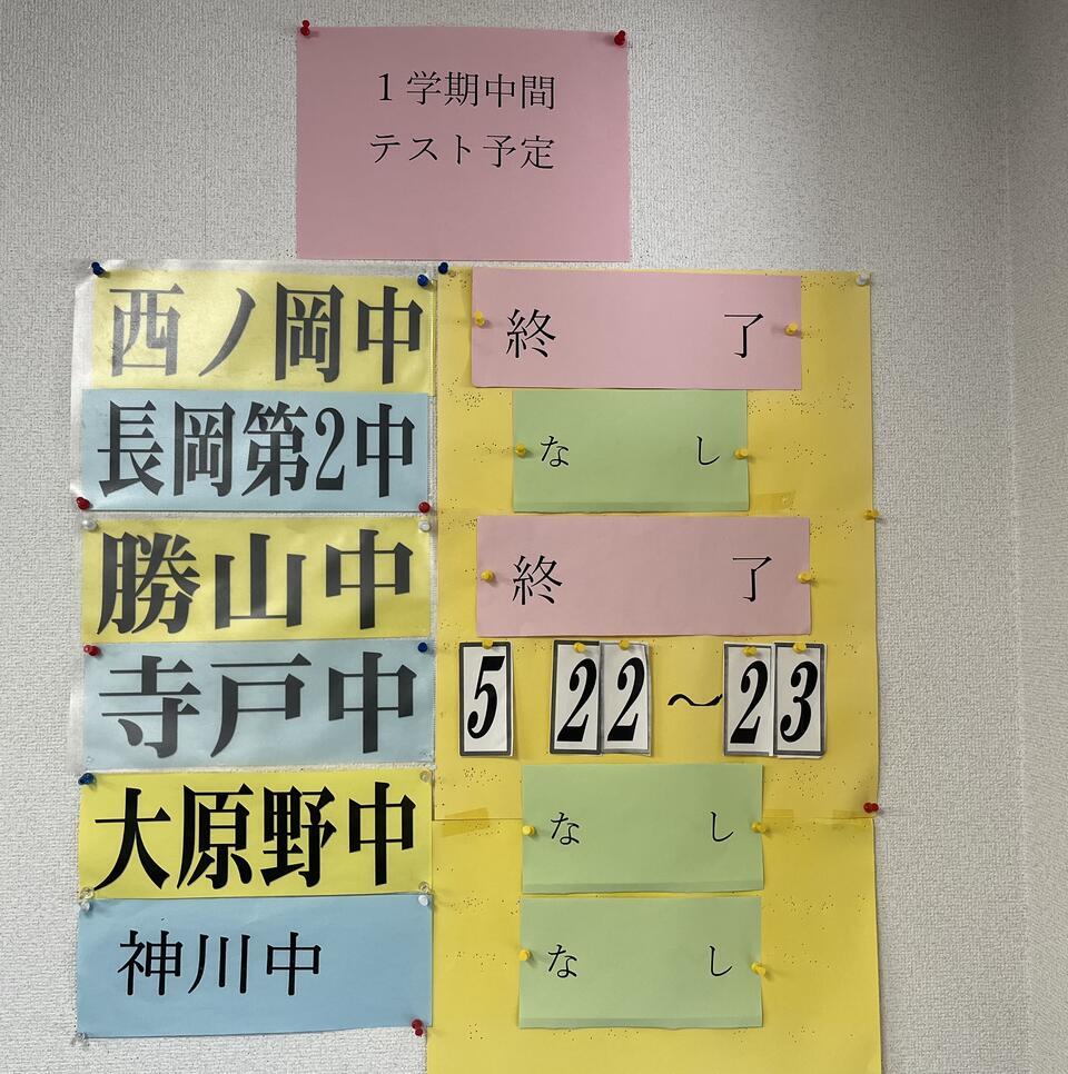 勝山中、西ノ岡中の生徒さんは中間テストお疲れ様でした。