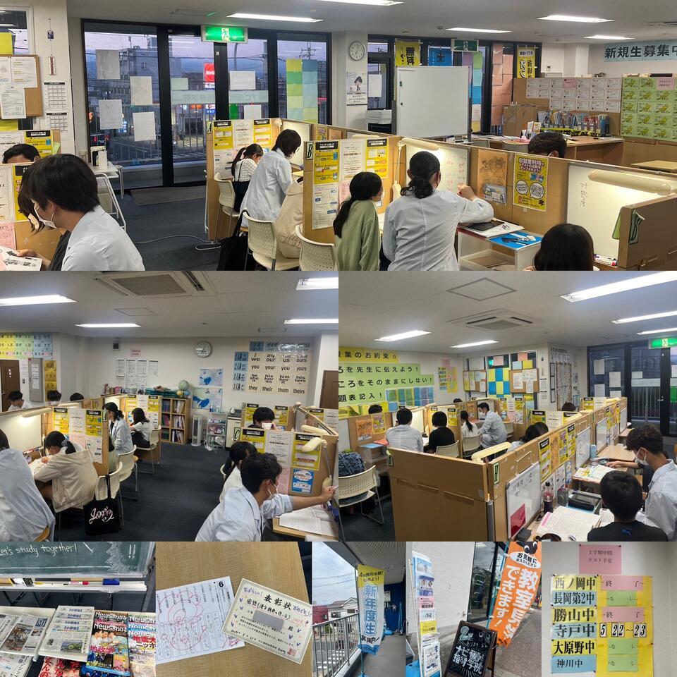 小中高生さん問わず、塾生以外の生徒さんも自習室は使用OKですので、今言ったテスト解き直し、中学高校生でしたら中間テスト、さらに期末テストに向けてのテスト勉強、あと小学生でしたら宿題、何でもいいので是非ご活用下さい!
