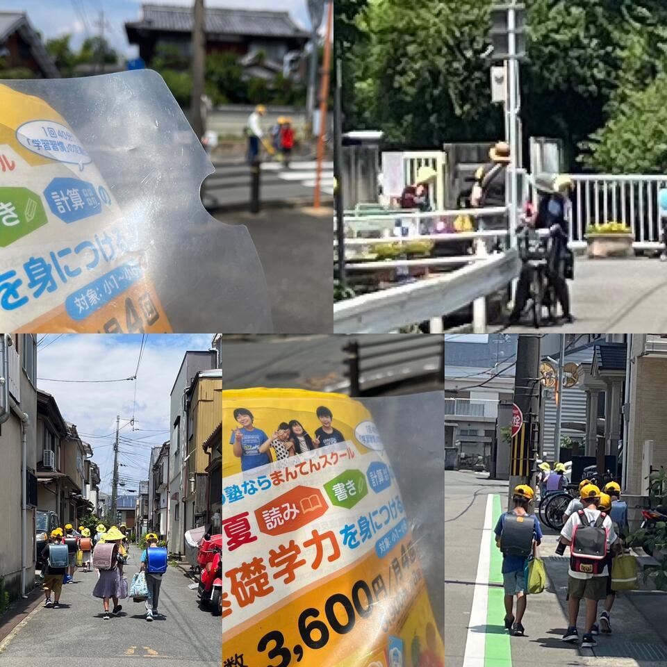 本日の午前中はそのうち、第三向陽小学校付近で、小中学生対象の無料体験授業、まんてんスクール等のチラシを配らせて頂きました。
