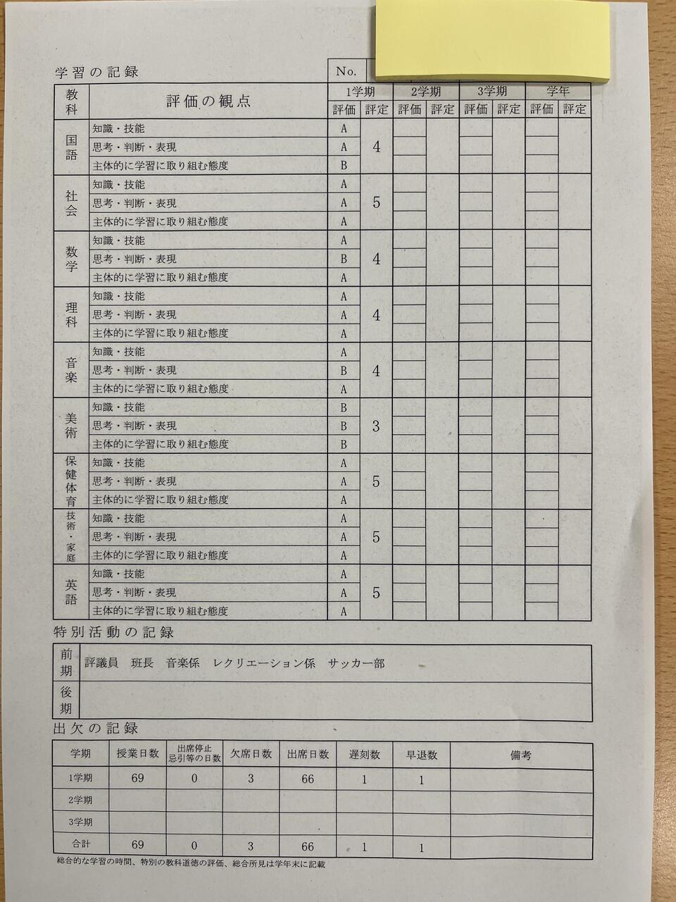 特に「提出物は期限を守って出す」「寝ない」この2項目は中学校以上の通知表の評価においても、重要視される項目ですから覚えておいて下さい!