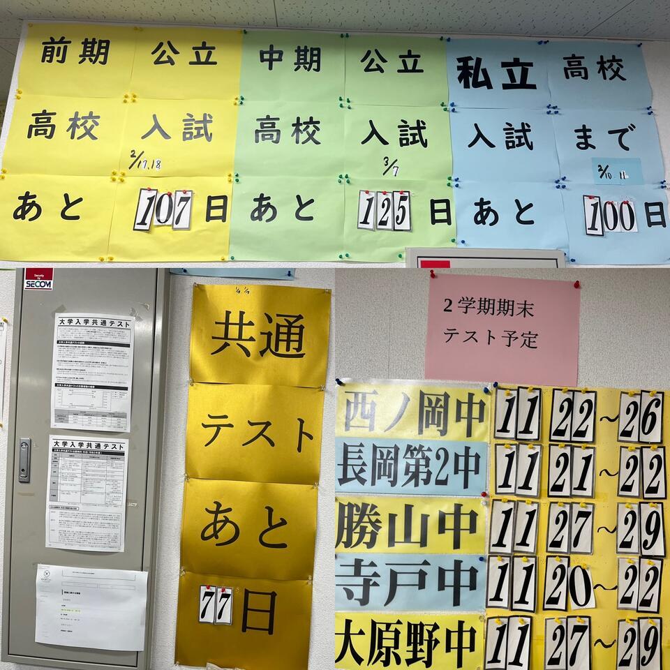 中学3年生は私立入試とか前期の公立高校入試で考えるとまであと約3ヶ月、 高校3年生は共通テストまであと約2ヶ月ということでだんだんと 差し迫ってきました。