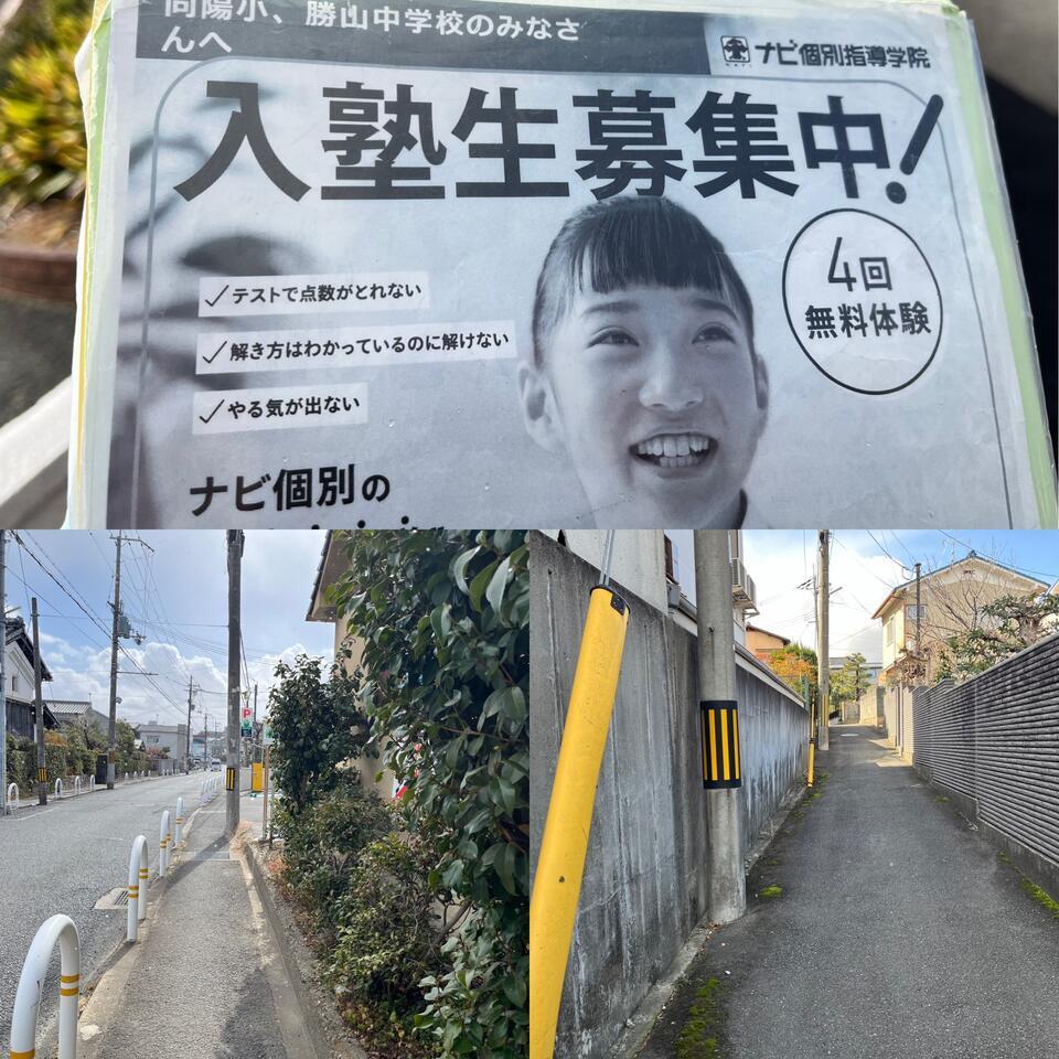本日の午前中は向日市寺戸町南垣内付近中心に、小中高生さん対象の無料体験授業のチラシを配らせて頂きました。