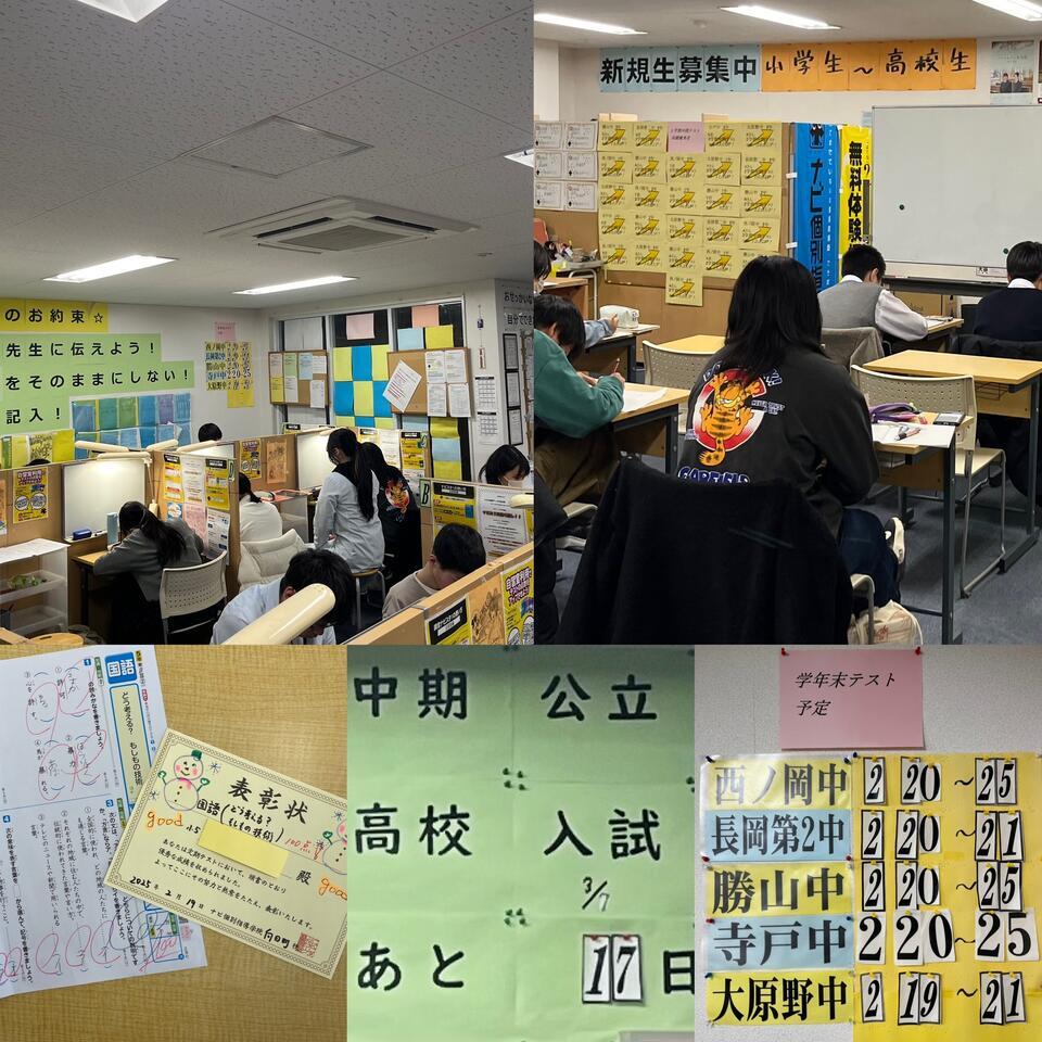 西ノ岡中、長岡2中、寺戸中、勝山中の皆さんも明日20日木曜日から学年末テストスタートです。