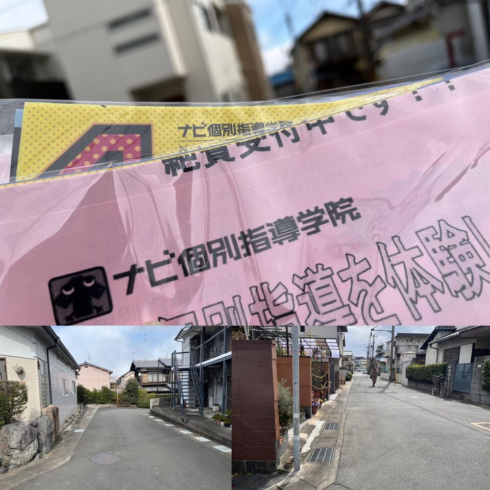 本日の午前中は、向日市寺戸町西野辺付近中心に、小中高生さん対象の無料体験授業のチラシを配らせて頂きました。