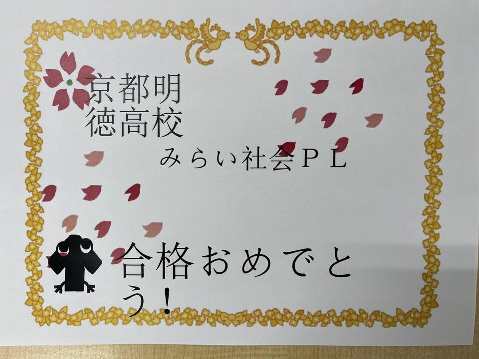 K君、京都明徳高校普通科みらい社会PL合格!!!