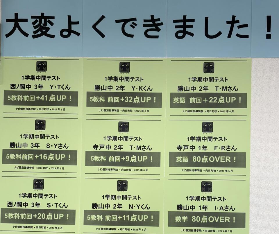 西ノ岡中 3年 Y・Tくん 5教科 前回+41点UP