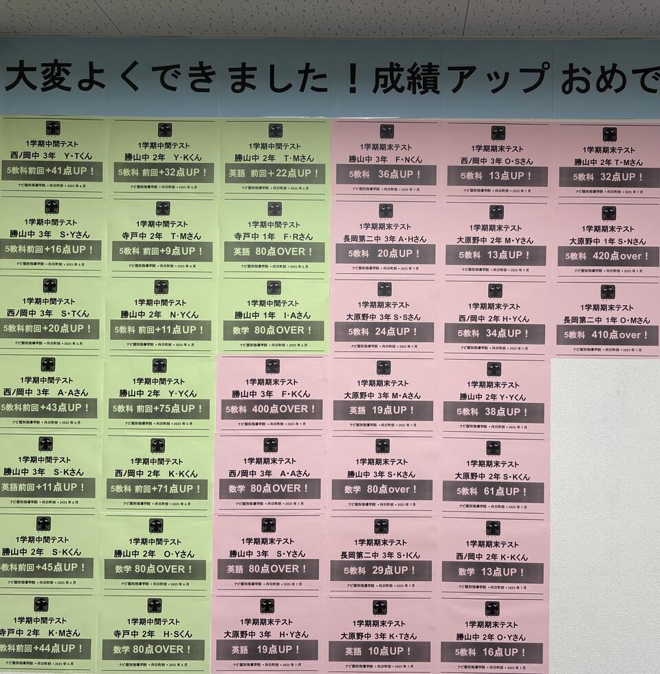 西ノ岡中 2年 H・Yくん 5教科 前回から34点UP